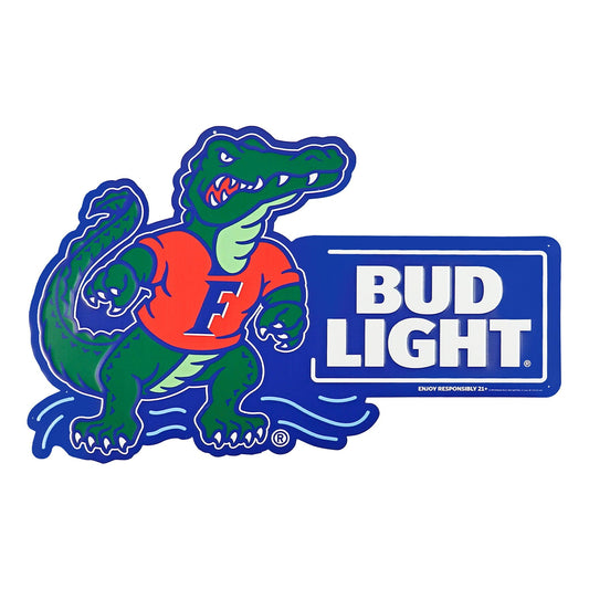 This Bud Light metal sign features the logo of the Florida Gators. It's crafted from...