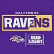 This Bud Light Baltimore Ravens T-Shirt is the perfect way to show your Ravens pride. Crafted from soft cotton fabric, it features a bold Baltimore Ravens graphic to ensure you stand out from the crowd. Its lightweight design offers breathable comfort all day long.