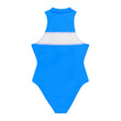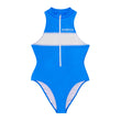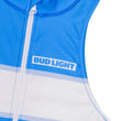 Front of Bud Light Crown Swimsuit with zipper in center chest and Bud Light logo on front left chest