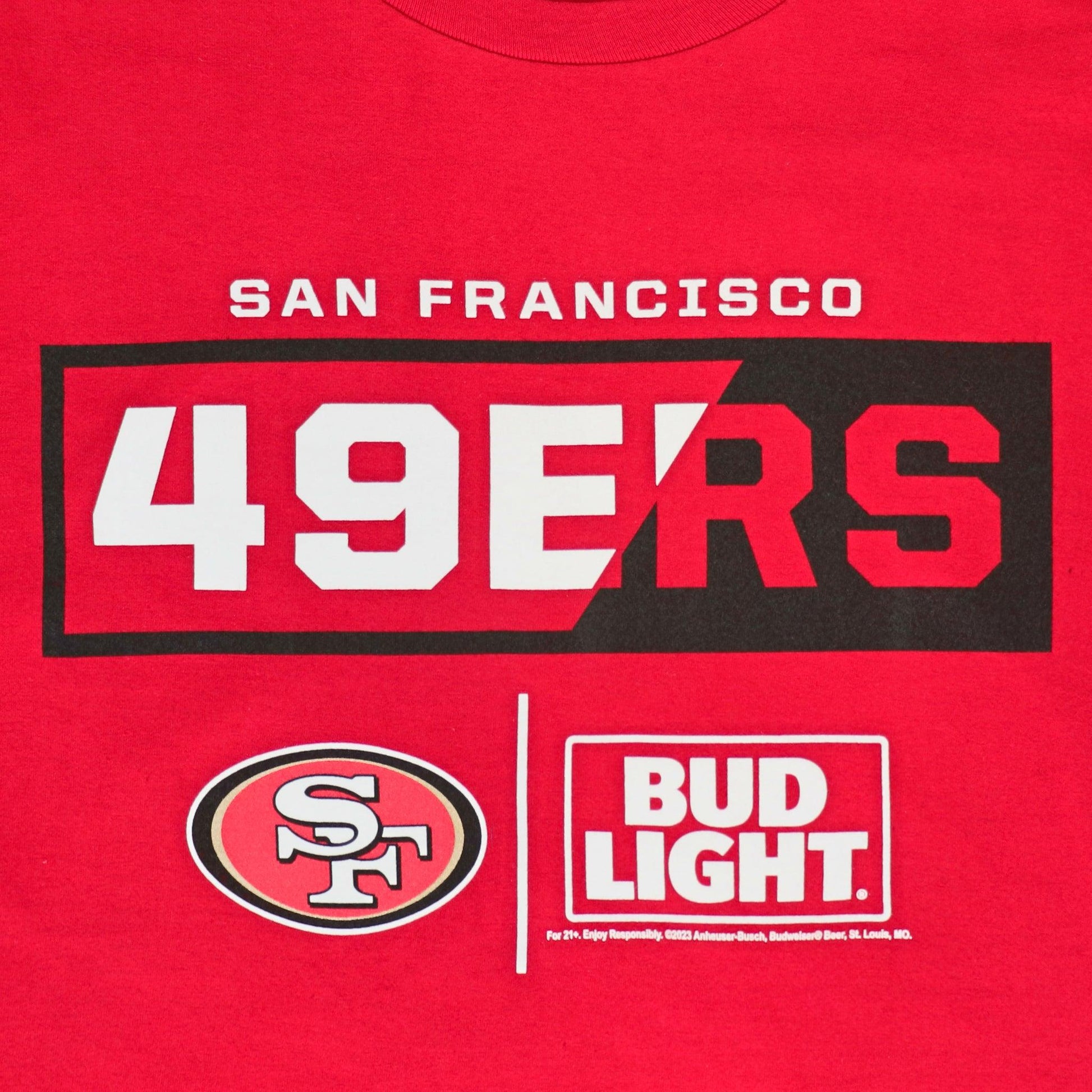 This Bud Light San Francisco 49ers T-Shirt is the perfect way to show your 49ers pride. Crafted from soft cotton fabric, it features a bold San Francisco 49ers graphic to ensure you stand out from the crowd. Its lightweight design offers breathable comfort all day long.