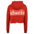 Who says queens can't rep the king? Be a true Bud in this red stripe raw crop hoodie.