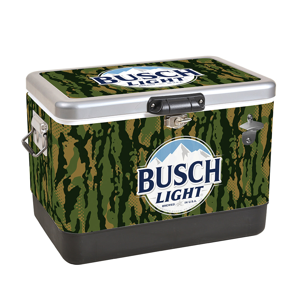 Built tough for the outdoors, the Busch Light Hunting 54QT Cooler is your go-to for keeping beer ice-cold from sunrise to sunset. With a camo design and bold Busch Light branding, it’s made for the blind, the camp, and the tailgate alike.