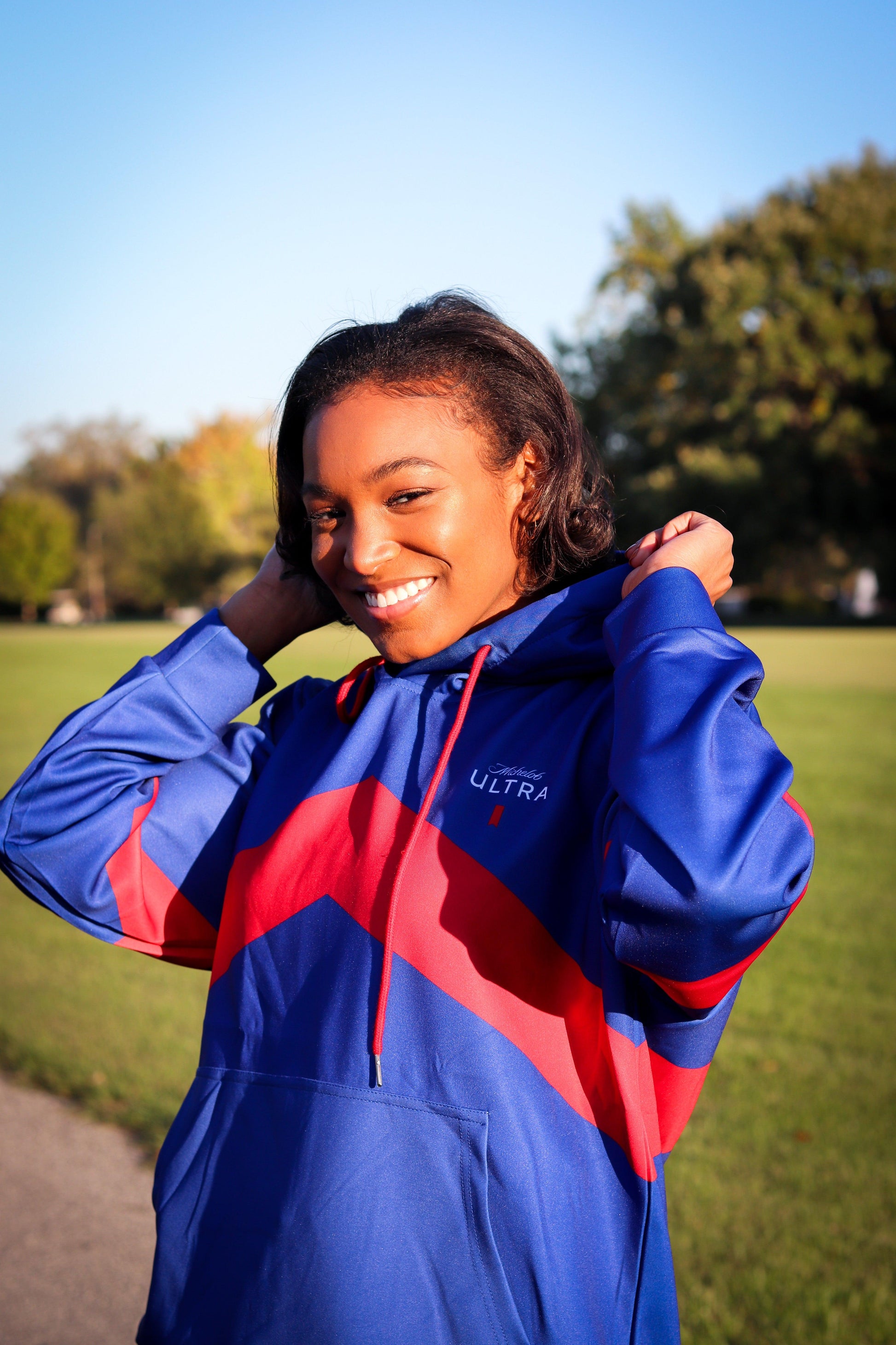 - Hoodie is available in 2 Colors: White with Red Ribbon and Blue with Red Ribbon