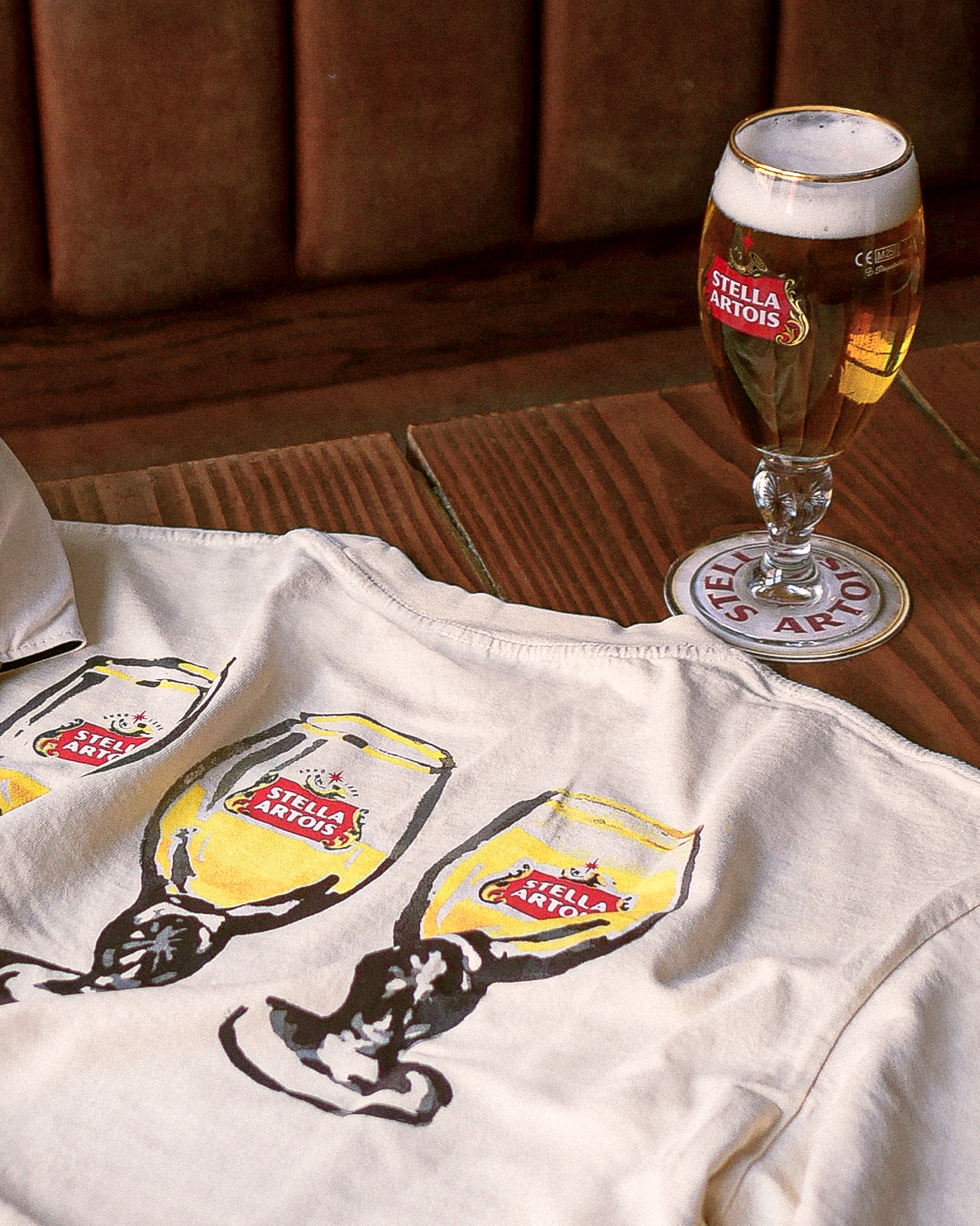 Elevate your casual wardrobe with the Stella Artois Brushed Art T-Shirt, featuring a carefully hand-drawn design of our iconic chalice. This refined artwork adds an artistic touch that celebrates the iconic Stella Artois heritage, blending timeless style with subtle elegance. Perfect for those who appreciate craftsmanship and understated luxury in their everyday wear.
