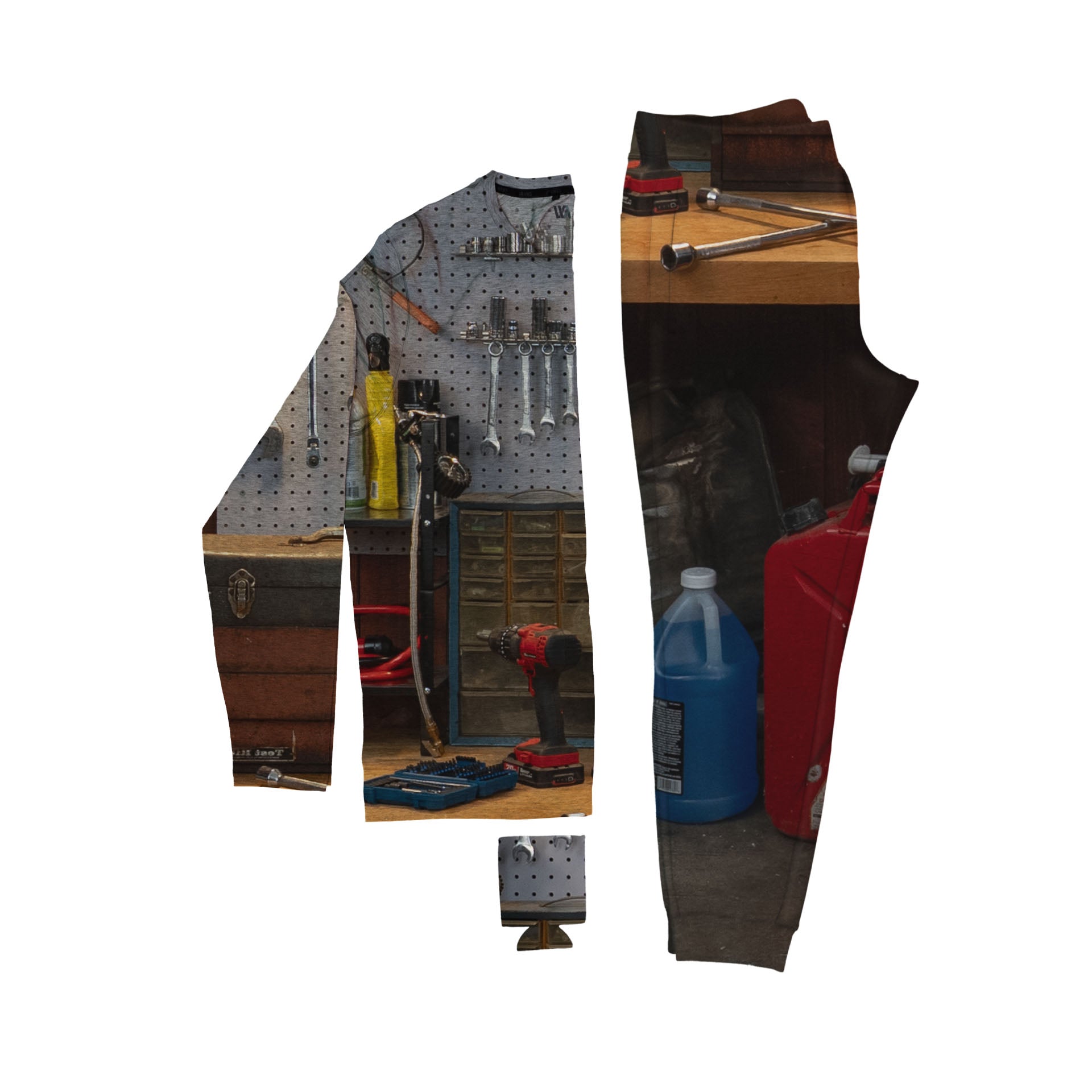 Avoid holiday detection with this matching long-sleeve tee shirt, pajama pants, and can coolie set for men with motor oil in their veins. Custom camo pattern allows you to seamlessly blend in with lubricants, spare parts and annoying metric sockets.