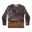 Stay out of sight and out of mind with this matching long-sleeve tee shirt, pajama pants, and can coolie set for everyday DIYers. Custom “Tinkerer” camo pattern keeps you hidden in classic garages filled with essential tools, adhesives and hardware.